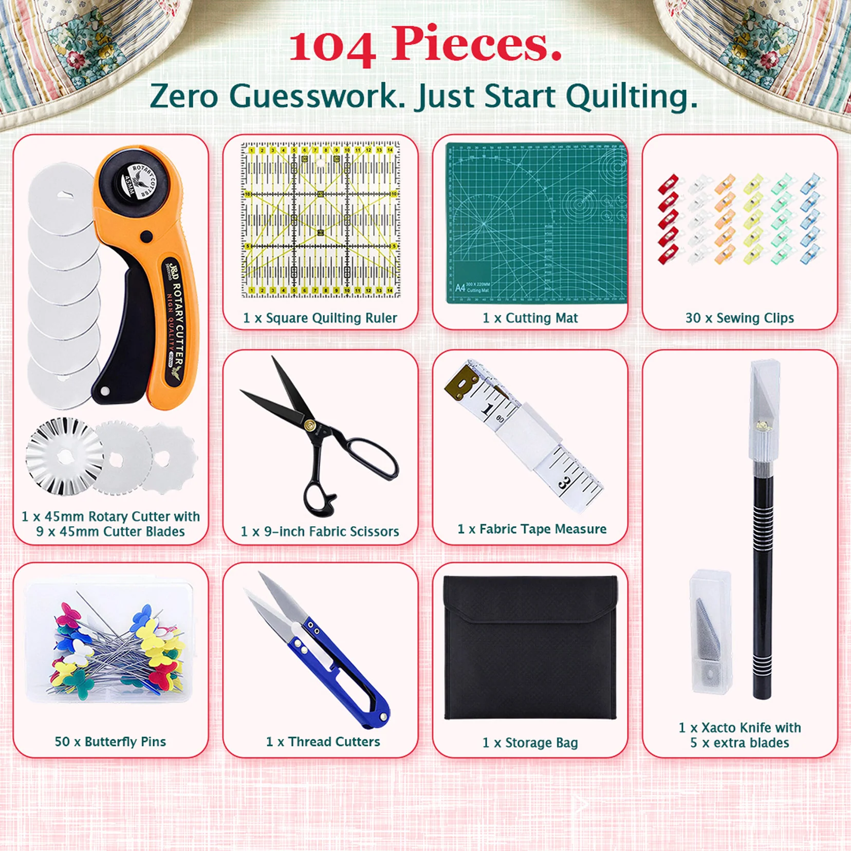 104-Piece Quilting Set: Perfect for Beginners